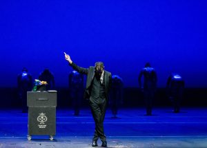 Magical illusions performed through large constructions, which are -usually- the backdrop of the presentation. Appearance – disappearance of a man, cutting of a woman, etc.